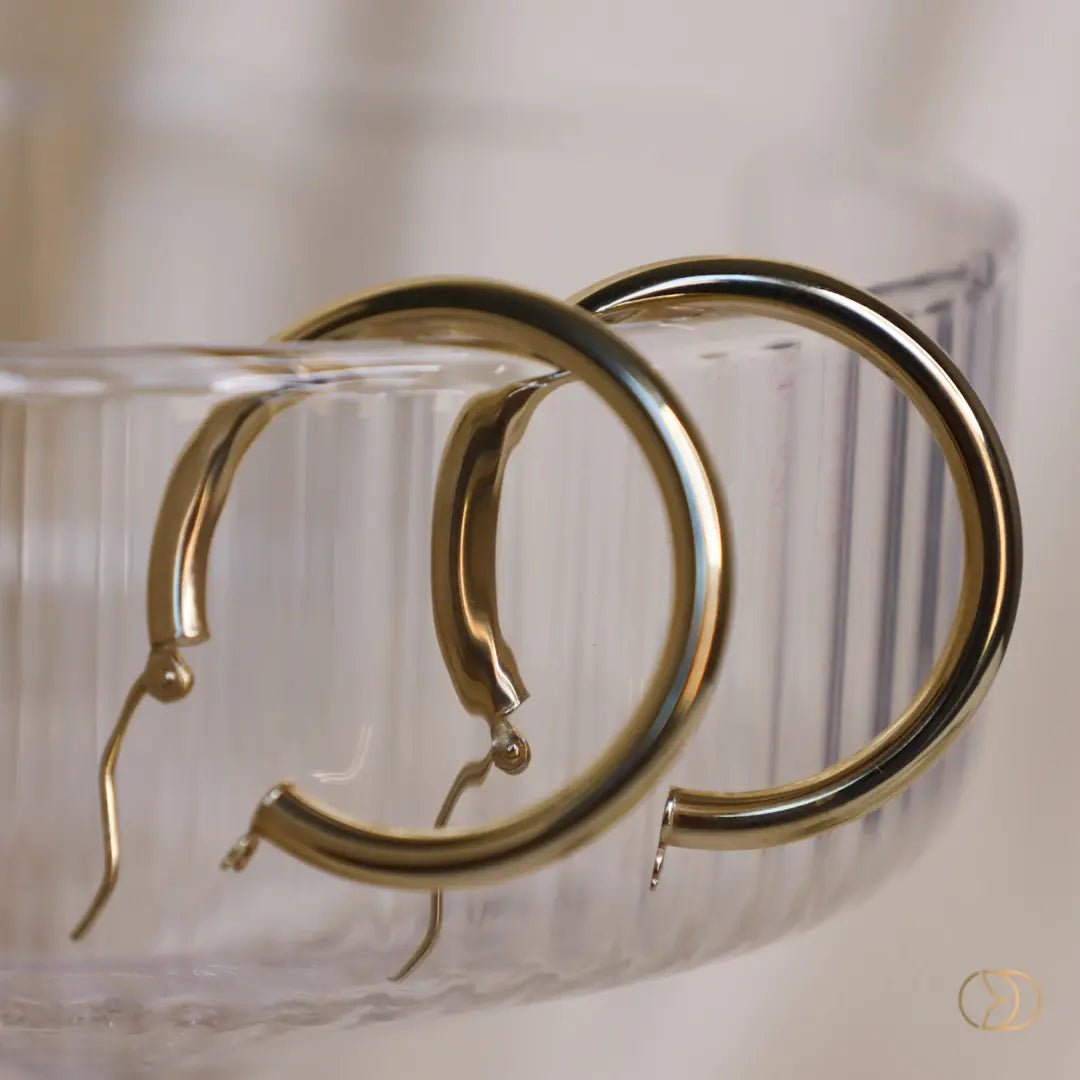 Los Aros Eternos son el epítome de la elegancia clásica. Fabricados en oro de 14k, estos aretes hoops combinan simplicidad y sofisticación, siendo el accesorio perfecto para cualquier ocasión. Su diseño atemporal los convierte en una pieza versátil que complementa desde looks diarios hasta atuendos más formales, aportando un toque de refinamiento a cada estilo.