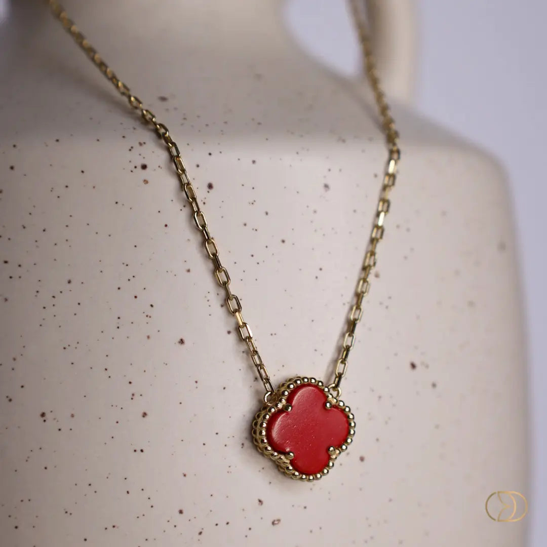 La cadena Trésor de Chance es una joya delicada y sofisticada, inspirada en el emblemático diseño de trébol, símbolo de buena fortuna. Elaborada en oro de 14 quilates, la pieza destaca por su colgante en forma de trébol de cuatro hojas, cuidadosamente detallado para irradiar un brillo sutil y elegante. Esta cadena es el complemento perfecto para quienes buscan una joya que combine estilo refinado con un significado profundo, un verdadero "tesoro de suerte" para llevar siempre consigo.